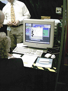 Of course what everyone really wants is new hardware these days. The RISC PC may well be a fine machine but it is now 7 years old and is looking quite out of date. Castle Technology were showing off the latest version of their Kinetic RISC PC, now running at 300Mhz. However the new processors were not being sold as an upgrade for existing machines but only as complete new computers. This seems a little odd as overclocking a chip (which is what Castle seems to have done) isn't very difficult. Remove the old crystal, solder on a new one and away you go. Personally I was a little disappointed as I hoped the largest hardware manufacturer would have come up with something better, after all the Omega is coming.