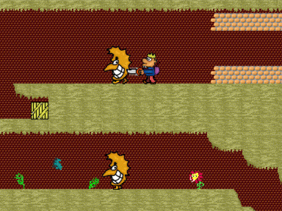 GEK Collection CDDafyd McFlanders and Toby Mackenzie get nostalgic with this latest games collection from APDL and ProAction. It's not often that we have the opportunity to review a new games release in RISC World, but when we do it's nice - even if that games release happens to contain a number of games which form part of the software libraries of individuals associated with RISC World. As such, to ensure impartiality, this review of the GEK Collection CD-ROM is formed from three reviews originally published in Archimedes World, then a roundup follows at the end. EmotionsWithin Emotions, you play a character called Henky Penky who is a rather plain sort of guy. One morning, he wakes up, looks in the mirror, and decides to do something about his problem. His search for emotions leads him towards great danger, mortal combat, bizarre monsters, weird puzzles and stacks of midgets. On loading the game, a nice colourful animation is displayed. It lasts for quite a while, showing how Henky Penky wakes up in the morning and sets about searching for emotions. This may of course be skipped past if you so require. All of the graphics have that comical effect, which I like very much. However, it is unfortunate that the introductory graphics are so much better than those in the actual game. When the introduction has finished, the main menu is displayed. Moving the mouse scrolls down a list of six options which can be selected by clicking Select when Henky Penky is pointing a gun at it. The six options are; play the game, skip to a level using a password, set the preferences, view the high score table, receive basic help on a number of subjects (including what the keyboard controls are for the game) and quit back to the desktop. The preferences option allows you to set Emotions up to your specific requirements. Options include; turn on-screen instructions on or off, set the volume levels of sound effects and music, switch between a stereo or mono output from the speakers, set the screen resolution, alter the key controls, and set the levels of blood which pour from either the bizarre monsters or yourself (useful if you wish to tame the game down to suit a younger audience). This is a relatively good range of preferences which can be set for a game such as Emotions. Behind the fancy introduction and the smooth menu of options lurks a less impressive game. The graphics are not particularly inspiring and could benefit from enhancement. However, to accommodate for this loss, there are also a number of good quality sound effects which help contribute to the game play. Along your travels, you come across many weird and wonderful things spiky haired and fire breathing monsters, chainsaws and guns which you can use as weapons to defend yourself, and sticks of dynamite to blow your way through the obstructing walls. The comical appearance stops you from losing interest, but the overall quality of the in game graphics are no better than of what Id expect from a shareware game. On a better note, Im glad to see that Henky Penky is very easy to control. Far too often do I find characters in platformers that move too quickly making them harder to control. GEK have got this right, which is a major plus point I feel. ![]() Henky Penky getting used to his world As Im sure youve gathered, I have mixed thoughts about Emotions. I believe that GEK have put too much effort into the introduction of the game, and not enough in the graphical areas of the game play. However, the control aspects are perfect, and I cannot fault them in the slightest. I feel the price is a little too high, and Emotions is nothing new, which the Acorn games market could seriously benefit from. But... generally a good effort, and if youre looking for a challenge, Emotions could be for you. FrakThose of you who've been Acorn users since the days of the BBC will probably remember Frak, a relatively quiet release from Ardleigh Green Road based Aardvark Software. (I went to visit where they were based, and found it all happened from a flat above a doctors surgery in Honchurch!). With Frak!, GEK and ProAction have come together to bring the game up to the modern day standards, whilst maintaining the original look and feel of the classic. ![]() Frak!: the game which sent a whole nation of BBC Micro users to work... late... Frak! is a 2D platformer. The basic idea of the game is to travel from level to level by collecting a certain amount of keys. However, do not be put off Frak! yet - gameplay is not as easy as it sounds. While collecting the keys, you need to be aware of a number of things: flying knives and hot air balloons which kill you if you come in contact with them; cute but deadly animals which dont move, but love getting in your way; and fading light which can only be cured by you collecting light bulbs. And to top it all off? Crystals need to be collected for bonuses, clever moves need to be performed so that you dont fall off the platforms, and youre equipped with one weapon only. A yo-yo! Surprisingly enough, it has the power to kill the Gribblers, and knock the flying knives and balloons for six. The in-game music and sound effects really give the game some lift. Although fairly basic, the effects are meaningful, and symbolise the actions extremely well. If I still havent whet your appetite, Frak!s user-interface is extremely stylish and easy to use. It consists of six buttons which allow you to: play the game, set sound and in-game music levels, design your own set of levels, customise the control keys, and view the hi-score table. Its nice to see that when you customise the control keys, they stay customised until you decide to customise them again (no matter how many times you quit and re-start the game) - a feature which seems almost non-existent in any other game Ive seen. Unlike many level editors in games, Frak! is particularly easy to use - youre given the items to place in your customised level, and all you have to do is decide wh