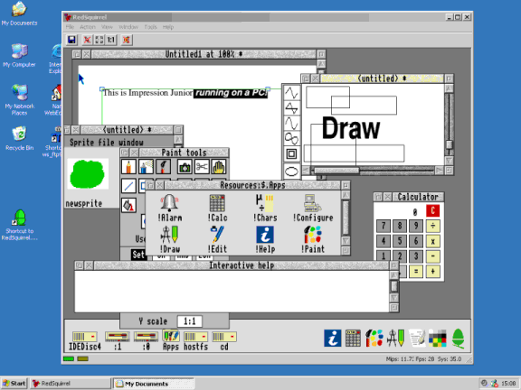 RISC 2 PCCharles Emberley investigates a RISC OS emulation CD. Some time ago I downloaded a program called Red Squirrel from the internet. This program allows RISC OS and RISC OS software to be run on a PC using Windows 98 or later. Unfortunatly, perhaps due to age, or a lack of understanding I was never able to get Red Squirrel to function properly. So on attending the RISC OS show in Bracknell I was quite surprised to see a small poster on the door. This poster announced that you could see RISC OS running on a PC on the APDL stand. My interest was awakened and since APDL was near the entrance I decided to see what was happening. On the stand a PC running Windows 2000 (It was WindowsXP - ED) was shown running RISC OS in a window. Inside the window various RISC OS programs, such as Impression and Draw were being used. This was the first time I had seen Red Squirrel working properly. If you have never seen it yourself the best description I can think of is that it is like the PC Card in reverse. Instead of having Windows running inside a RISC OS window on a RISC OS desktop, you have RISC OS running in a Window, on a Windows computer. ![]() RISC OS running on a Windows Computer Although I already had a copy of Red Squirrel, that didn't work, I purchased a copy of the CD. I managed to have a talk with the demonstrator (it was me, which is how this article came about - ED) and discovered that not only did one get the emulator I also had, but many more besides. One thing that I found most interesting was a program that ran BBC Basic in a Window on the PC. This took me back to my BBC days, I was allowed to type in a quick program, and then run it, just like using BASIC on an Acorn computer. At the show the PC was shown running both RISC OS 3.1, and RISC OS 4. I do not personally have RISC OS 4, as I find that I can do everything I want with my current RISC PC. One question that I did have was how does one get RISC OS into the PC? My initial assumption was that the ROMS must be inside the computer somewhere. It would seem that this is not the case, on the RISC 2 PC CD links are provided for you to legally download RISC OS 3.1, and also instructions are available showing how you can transfer "images", as I think they are called, of the ROMS onto the hard disc of the Windows computer. The emulator can then "see" these and runs them somehow. I have now had a couple of weeks to play with the CD and have to say that I am most surprised that this software exists. I am not sure of the legal implications of running RISC OS 4, but I have been assured that RISC OS 3.11 can be run without any worries on that score. Almost all the software I have tried has worked without problems and I am delighted with it. I have also put a copy of the emulator on my sons laptop, and have had some fun with a couple of friends showing them my "new" colour RISC OS laptop. The CD contains a large number of items, not just Red Squirrel and so I have take the liberty of copying the HTML contents page from the CD so you get some idea of what it contains. WindowsContains software that will run under Windows.