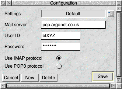 Reviewed by Mathew Thompson Mailscout - Anti Spam and On-line email interrogation for RISC OS . How many times have you downloaded your emails only to find that its full of rubbish which you instantly delete? i know i have, if you use online email such as lycos or hotmail this isn't quite such a problem as you can just ignore it but, if like me you download it all in one go, and then look at it offline, you can't get rid of it, but now you can. Image software have released Mailscout which is a simple but effective spamblock program which is the answer to every spam haters prayers! Installing Mailscout is the usual drag onto the relevant place on the hard disk and then let it copy it across and thats it - simple. Before you can use Mailscout you have to configure it, all you do is load the program and then from the icon on the icon bar click on "Choices" and then you will see the "Configuration" window as shown below. ![]() Now you need to enter your details, so enter your Mail Server, User ID, Password and which protocol you are using, the configuration screenshot shows it set up for an Argonet account. By using the "Settings" option you can switch to other email accounts that you have set up and bin the spam from them as well, if you have just the one, then leave it on default, once done, click on save and all being well it should work ok. One last bit of configuration and this is the important bit you MUST turn off the fetch option on your internet software (eg !Dialup) otherwise you won't be able to examine it before download to do this with !Dialup from the iconbar menu go to Choices>General and then on the "mail/News Transfer" untick fetch/sendmail on connection. Now we're ready to go.