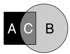 In the diagram above square A, which is of colour A, (the colour to be altered in the imported colour table) has a filter, B, partially obscuring it. The filter"s natural colour is B (the selected colour when using Shift to colour), which is defined by its colour when the filter loses all transparency. The intersection, C, is then of the colour A shifted to colour B by the level of opacity of the filter B, the percentage selected in the Function window Shift to colour.