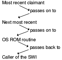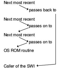 So far I have been a little simplistic in the explanation of how vectors hold addresses. It is more accurate to visualise a vector as the start of a structure which contains pointers to the next claimant of the vector. This structure holds both the address of the start of the code and a pointer to the workspace for the code.