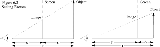 For various reasons it is often more practical to use the object to screen distance, O, rather than the total distance. One reason for this is that any object that has moved beyond the screen towards the viewer develops a negative value, and for plotting purposes can therefore be ignored. Our formula then becomes: