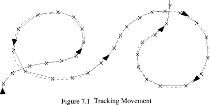 Figure 7.1 shows how this would look. For clarity I've not drawn in the background grid. As the objects following the path will probably be moving quite quickly, you can afford to space the plotting points out quite a lot. Changing the spacing of the plotting points can be used to good effect. In the example, movement will seem slower going upwards.