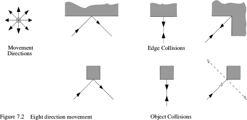 Listing 7.2 shows all these points together. The main sprite uses a film animation of eight sprites. Erasure is by rectangle filling, and the erase procedure is masked by an explosion sprite. For best effects this latter should also be film animated.