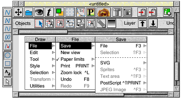 ![]() DrawWorks running with a Select version of Draw Users of DrawWorks Third Millennium will not notice as many changes, indeed I only noticed the new clip board controls and the evidence of a couple of minor bug fixes. However there is the one very important change, that DrawWorks and RISC OS Select can now happily co-exist on my desktop. This is one upgrade I simply couldn't do without. ConclusionIf you want to be able to use DrawWorks and Select together and don't want to have to be forced to use !DrawDA then DrawWorks Select is excellent value. As the adverts say "it does exactly what it says on the tin". However I would have liked to see a few new tools with this version of DrawWorks, but then those who have DrawWorks Millennium or New Millennium will find plenty of new experiences with the multitude of new features and improvements. I don't know what work had to be done to get DrawWorks and Select to live happily together (I know :-( - ED) but I am very glad that it has been done especially as Select release 3 is now available. Product details
