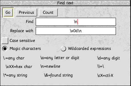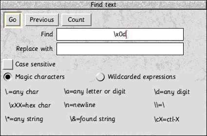 Most PC users use Windows Notepad for small text files. These files have a file extension txt. This is the easiest type of text file to deal with. Just load them directly into !Edit. The only alteration, or more accurately tidying up, needed is to take out the &0d codes at the end of each line in !Edit. Click select with the pointer at beginning of the text to ensure the cursor is at the start. Using the Find Text window (press F4 or go through Edit option on Menu). Fill in the window as shown below. ![]() Then click on GO and in the Text found window use the End of file replace button. Microsoft Word Files (doc files)