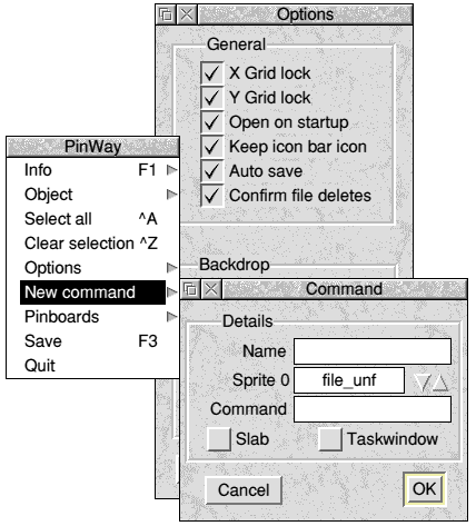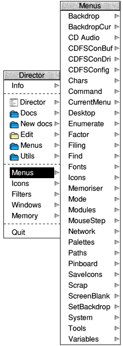 ![]() BBCFiles BeebITFS - James LampardBeebItFS is an 8-bit BBC Micro filing system, written so BeebIt can access files on RISC OS filing systems. It also allows the use of some 6502Em style 'BBC Applications'. Director - Director DevelopersDirector is a general purpose desktop tool. It allows you to customise your desktop by creating menus of useful commands and icons to attach the menus to. Any number of menus or icons can be created and attached in any order to each other. Director also allows an alternative and faster view onto files in the form of directory menus and allows these menus to be attached to other menus as well. Director has some other useful features such as remembering the most recently used files, the ability to add key strokes into the keyboard buffer and the ability to produce directory menus over drive icons. Director is fully customisable by the user, and can do many or all of the functions of Pinboard+, TreeMenu (AKA DirMenu), Filer-, QuickDir, DeskUtils, Memorizer, Menon and some of the functions of Filer+. ![]() Director FreeA very nice little RISC OS improvement that provides a graphical display of the free space on a disc. This is supplied with different versions for all versions of RISC OS from 3.1 onwards. Simply drop the version that is correct for your OS into your PreDesk directory and re start the computer. ![]() Free PinWay - Giftware by Bernard VeaseyThis is a very nice extended version of the normal RISC OS Pinboard. It supports up to 8 different pinboards, each of which can have completely different icons. PinWay pinboards can be auto-saved, eg. When the computer is shutdown, the program is quit or the user manually clicks 'Save'. As well as normal Filer type objects such as Applications, Files and Directories which can be dragged to the 'PinWay' pinboard, 'Command' type objects which execute RISC OS commands can also be created on the pinboard. Files from most applications can be saved direct to the 'PinWay' pinboard. eg. Just drag a 'save' icon from another application to a blank part of the 'PinWay' pinboard. If you drop the 'save' icon from most other applications on to a directory icon that has previously been placed on the 'PinWay' pinboard, it will be saved to that directory and not the 'PinWay' pinboard. ![]() Pinway PreShut - Giftware by Bernard VeaseyNow a wonderfully simple idea. PreShut can be used to run an automated series of tasks just before the computer shuts down. For example you could arrange for the machine to automatically back up some important files. You can also arrange for shutdown to halt if certain "key" applications are currently loaded. Why hasn't anyone thought of this before? Updates to both of Bernards programs can be found at www.bapfish.org.uk. Signing offThat is it for this PD column, what software will we be featuring next issue? To be honest I don't yet know but I am aware of a couple of real gems in the pipeline. Come back next time and I will be able to tell you more! Paul Brett |