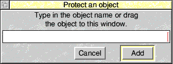To protect a file or directory against deletion select Don't Delete at the top of the files window and click on Add to open the window shown.