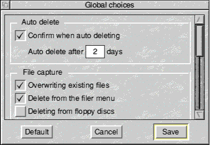 With this option ticked any files being deleted from floppy discs will be captured and stored on your hard disc.