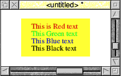 The difference between this and the previous example is that although there is no background colour the text has been anti-aliased so that it will display correctly against a yellow background. If you want an actual background you it is best to create a rectangle in !Draw filled with the correct colour, and place it behind the text area, like this.