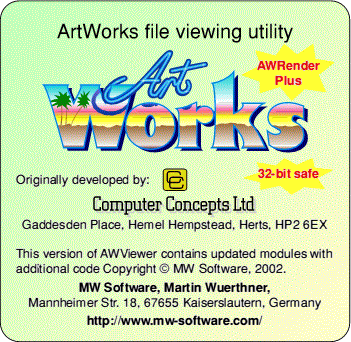 Once your copy of ArtWorks 2 arrives in the post, the first thing you'll want to do is install it. Installation is simply a matter of loading SparkPlug (or using SparkFS from your hard disc) to open the ArtWorks2 archive on the CD-ROM, then dragging the contents of the ArtWorks 2 archive to a suitable location on your hard disc. The very first thing you should do is double-click on !ArtWorks2, having first ensured that any copies of ArtWorks which have previously been visible are hidden accordingly. This is to ensure that there are no conflicts between the two applications. A registration window will appear, into which you should enter your name and the keycode as provided in the four-page getting started guide. Documentation for ArtWorks 2 comes in electronic format at the moment; the promised upgrade to ArtWorks 2.10 will include new printed manuals for the benefit of all customers. The complete original ArtWorks 1 manual is included in Impression and PDF formats; together with the complimentary guide to what's changed in ArtWorks 2 and supporting materials for the modules accompanying the package. Literally hundreds of clipart images are provided with ArtWorks 2, including all of the images supplied with the original ArtWorks together with those produced to aid publicity of the new plug-in modules as they were released. The examples do vary in quality, if you require further examples of ArtWorks in action, Computer Concepts do still have stocks of one of the ArtWorks competition CD-ROMs. There are no new fonts provided with ArtWorks 2, but given that the target audience is mainly RISC OS designers and enthusiastic home users you can reasonably expect many users to have a full collection. The only additional items provided on the CD-ROM are more complimentary than a necessity, AWViewer and AWSwitch are provided to allow the viewing of ArtWorks files without a need for ArtWorks 2 and to handle how ArtWorks manages half tones. ![]() AWViewer To view the manuals provided on the CD-ROM, !PDF is provided in the latest IYONIX-ready form; together with SparkPlug to make reading the files off of the CD-ROM that little bit easier. Once you've finished exploring the content of these folders, and have copied anything you're likely to refer to onto your hard disc, you can essentially put the CD-ROM on the shelf as you're only likely to need the CD-ROM again in the unfortunate event of your hard disc failing. In with the old... and also the new...