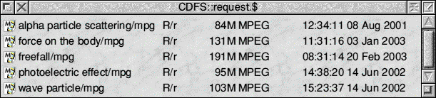 Fig. 1: CD of requested videos Copyright IssuesSchools have a licence from the Educational Recording Agency (ERA) that entitles teacher to record broadcasts for the purposes of teaching. This licence also allows us to swap programmes with each other. The SVN is just a scheme that allows effective sharing of these wonderful resources. There is of course absolutely no reason why other teachers of other subjects shouldn't share broadcast videos in this way and I would hope that if anyone falls into this category, or knows someone who does, they will see what they can do. RISC OS CompatibilityPlaying MPEG video on RISC OS machines is not easy. However a basic StrongARM RiscPC can cope. My machine's specification is 202MHz StrongARM, 2MB VRAM, and 48MB RAM. KinoAMP is my player of choice, as it has a great desktop user interface and supports sound playback. My CD ROM drive is only 8×, and can just about cope with playing the videos. More recent speeds will cope admirably. Make sure your CD ROM buffer is at maximum: 512K.