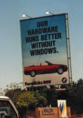 Yes its the new disimproved Hugh Jampton column with the less is more guarantee... ![]() My guarantee to you is that all future Hugh Jampton columns will be error free. Was last issues column error free? Well that's a very good question, it was certainly error free when it left here. (Actually it was incomplete, which is why it had errors in - ED) However by the time the last issue had been dutifully knackered by an inexperienced editor (watch it - ED) it was a mess, so let me apologise. Still look on the bright side, it was still error free, well the errors were all free! Still I suppose you can't expect much more, after all RISC World does employ the best brains that low wages can buy. Last issues caption competitionSo last issue I ran a picture, which very few people could see.... ![]() But this time you can, however some clever sparks still managed to send in some captions... "The latest US invasion force sets sail." "It's full pollution ahead for Microsoft." "Bill Gates' latest tool to surf the net." and, because someone forgot to convert the sprite to a GIF ... "I'm sure I left it here somewhere...."What?", "No, it's not called the Mary Celeste!" All the above were sent in by Brian. However we have one clear winner this time, firstly for not seeing the picture and secondly for going and finding it! Oh and thirdly for making a caption that fitted the picture and the cock-up. Geoff Potter So well done to Geoff and now a change of mood. Hugh's letters cornerAnd now a new feature for the Hugh Jampton experience, letters! Hi Hugh! Well I never saw it guv, I only got one entry forwarded to me so I published it, out of interest what was your entry? I suggest you have another go this issue, and if you do send an entry in I promise to publish it (provided it's clean enough). Now it's that merry antipodean Alan Shooter... G'day LiDL is a chain of food shops, as is Iceland, hence the old advertising slogan "That's why mums gone to Sainsburys". I suppose we could have a guess the picture competition, I will have to think of a way of doing it so that it isn't too easy, how about guessing what picture I am thinking of now? Actually perhaps that isn't a good idea. This issues photoSo can anyone come up with a caption for this? ![]() Send your entries to HughJ@riscworld.co.uk and we will print those that turn up, and won't offend anyone, well anyone important anyway. So lets's crack on with the space filling, here is this issue collection of photos lovingly swiped from the internet. ![]() Yes RISC OS does run better without Windows. AS this chap will testify. ![]() We have been hearing rumours about a new RISCStation laptop... ![]() And it seems that Stuart Tyrell has released his multimedia keyboard driver for download... ![]() ...some people nearly got crushed in the rush... ![]() At least they hadn't queued to get their money out... ![]() Mind you is it worth using banks when this man's about? ![]() And like all good news programs we will finish off with a cute animal photo. ![]() |