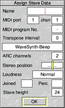 The OK box is provided as a simple way of removing the 'Assign' window. You will find, if you try it, that all the changes described above take effect immediately - even while a score is being played. It is not strictly necessary, therefore, to click the OK box - but it is an easy way to finish off the operation and remove all the menus.