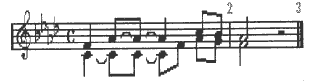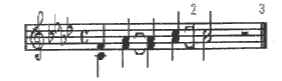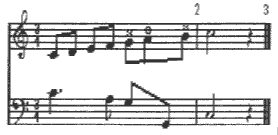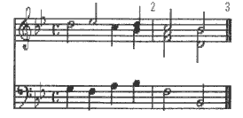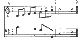 The following example on two staves will, however, play correctly because Rhapsody uses information on the second stave to work out when the notes on the first stave should be played.