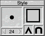 The top right area can be toggled between Stroked, Filled or Stroked and Filled. The graphic changes to reflect the differences. The first two colours in the Picker are used for the stroked and the filled area. If only one colour is in the Picker then black is also used but make sure that black is not the only colour in the Picker. The icon to the right of the number is used to select whether the joins are Butt, Round or Square. Toggle between the options by clicking on the icon.