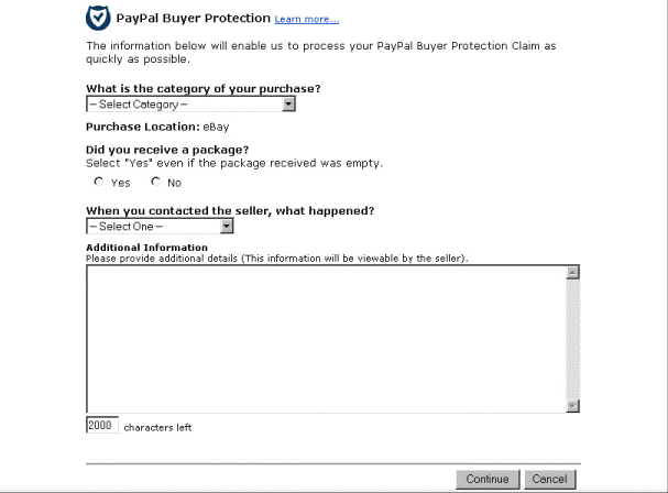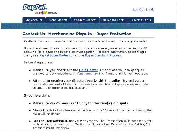 Clicking on the Buyer Protection logo shown above takes you through a set of steps to the Paypal claim service by choosing to "Learn more" or "File a claim".