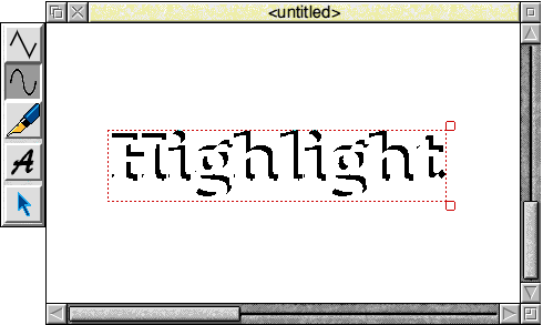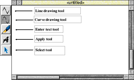 The toolbox contains five tools, three of which will be recognised by anyone familiar with Draw. The toolbox is attached to the main window as it is in Draw and can be removed if necessary and replaced by a menu. The toolbox appears as shown above.