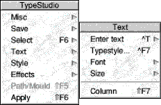 - From the Text menu select the SwissB.Medium font, a size of 70pt and enter 'TypeStudio' into the Enter text window. Click on OK or press RETURN to convert the text to an object.