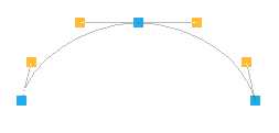 This diagram shows a line made up of two curved line segments ready to be edited, the lighter grey points are the extra control points for each curve segment which are yellow on the screen. |