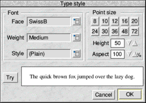 Typestyle - This opens a window where you can specify and preview the font you wish to use.