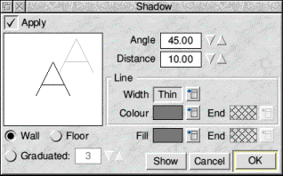 The last three options on the Shadow sub-menu set the style for the shadow selected from the dialogue box shown above. The style options operate in the same way as those described for the Style entry on the main menu, but only affect the shadow.