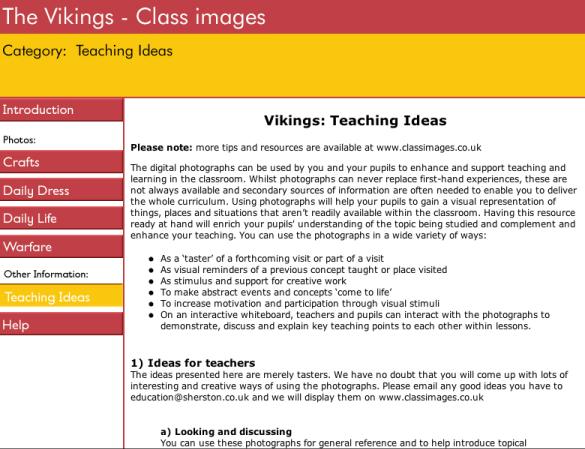 Sherston supplied the Vikings collection for review, and the content was divided into four areas: crafts, daily dress, daily life and warfare. It's clear from the start that an enormous amount of work has gone into putting together this selection - the scenarios and images are so clear and the quality so high that it's difficult to find any way to criticise these.