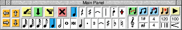 At the bottom of the Panel window is a row of icons showing eight different lengths of note, plus some other symbols: