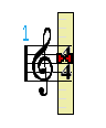 First we must put in the key signature, 2 sharps, so click on the empty space between the bass clef and the time signature, select the appropriate key on the Main Panel and insert it using the insert-at icon, shown left.