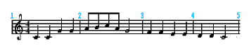 Now play the score again. I am sure you know the tune well. Why not see if you can write the next four bars? (Hint: the next two are exactly the same as the first two.) Now see if you can continue the bass line as well and when you are satisfied that you have got that right, try putting some chords in the middle. You will find talent here that you didn't know you possessed! Composing real music was never this easy before!