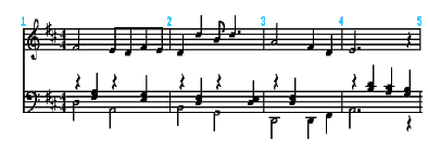 There is just one tiny problem left. When we put in the first stave, we forgot to put in three down-stem notes in bar 2. To correct this, place the cursor on the second note in bar 2 and click on the swap-stems icon shown on the left. Repeat for the next two notes.