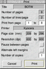 Printing can be one of the most frustrating parts of getting to know a new program and it would be wise to try printing a few test scores before trying to print out a whole symphony. In the first place, printing is a slow business (and the RISC OS 3 printer drivers are if anything slower than the old ones.) If nothing seems to happen at first, be patient. If things genuinely go wrong, press <Escape>.