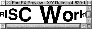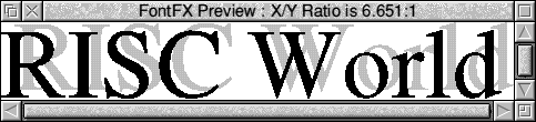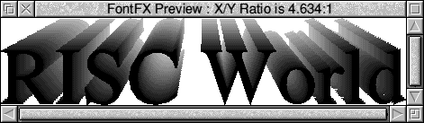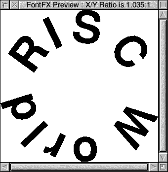 Because it is sometimes difficult to visualise the effect of rotate, slope and lean, a small 'example' window opens showing how the word 'FontFX' would look based on your current setting. This remains open whilst you alter the angle, and closes a few seconds later. If you want to re-open it to check the setting, just click on rotate, slope or lean again.