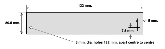 The width shown is 132 mm. which is actually 4 mm. wider than the standard Acorn backplate at 128 mm. The reason for this is that with the standard width backplate the holes are rather close to the edge, only 1.5 mm. away. This is a bit cramped and so I prefer the make the plate slightly wider as it makes drilling easier. You can, of course, use the standard width if you prefer.