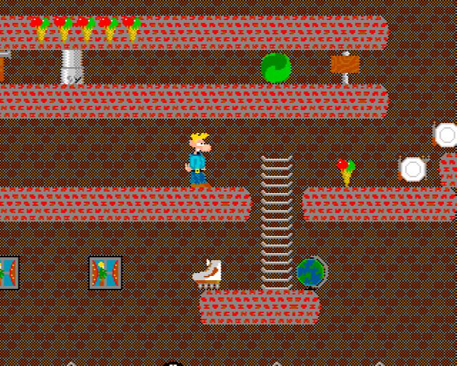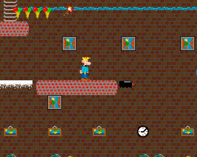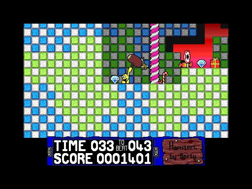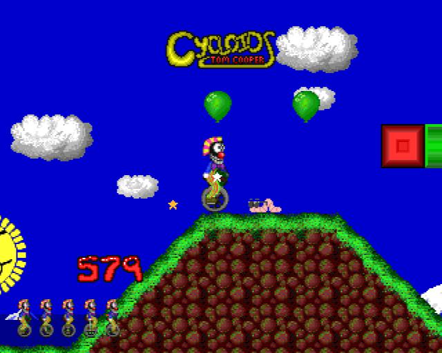 InstallationThe procedure for installation is exactly the same as all the other 4th Dimension CD collections, except that Wizard Apprentice is not included in the installation program. This is because it is a huge game that needs a lot of disc space, so if you are short on hard disc space it may not fit. So you have the option to either install it onto the hard disc or you can run it directly from the CD-ROM. Bloodlust![]() This game is a new one on me, I've never seen it before, I think it was one of the later 4th Dimension games that were released. There were quite a few of them which, unfortunately, weren't up to the standards that we'd expected from previous releases. I'm not really sure what the objective of this game is exactly as there is no background story and the manual doesn't really hint at much either, so it's all a bit of mystery as to what you have to do in this game, the only thing mentioned is a list of artifacts you will need to collect in order to escape. So from that I'm guessing you have to move around from screen to screen tracking down these items which will help you progress through the level until you find the exit. ![]() So what the game like? The controls are straight forward just left, right and jump, but despite that I found it rather difficult to control the character as he moves around too fast and skates along platforms falling off far too easily and making precision jumps rather difficult. It maybe that it is running too fast on a StrongARM machine and a slow down program might make it better, but to be honest I found no incentive to even want to try. You guide the character around the screens, avoid things that kill you, collect extra lives, and that is all I really saw of the game, that and I pressed a switch which did something somewhere I suppose, but I found the whole game uninspiring and really didn't have the urge to find out. ![]() The graphics are alright and suit the game. The sounds consist of an uninspiring tune throughout the game and a few in game sounds effects. As you've probably guessed I didn't think much of this game - it's difficult to control, and I have no idea what to do. That may not have helped but considering what other games are available to play this isn't really worth bothering with. I'm certainly glad I didn't part any cash for this originally, I've played better public domain games, a compilation filler at best ! Cycloids![]() This is possibly the silliest game I've ever played, Originally released by Software 42 and was later acquired by Gamesware/Eclipse (remember them?) so although not a 4th Dimension release it really does deserve to be in this collection of RISC OS platform games. The background to this game is that the world is under threat from a race of aliens who are in fact an army of balloons who are intent on taking over the world and turning everything evil! It shouldn't be too hard to get rid of a few inflatables, but then who's job is it to get rid of them? The Army? The SAS? No, a clown riding a unicycle! That's the main character of the game who you have to control to save the world from the invading balloons! I suppose clowns and balloons go together but when the world is at stake? Cycloids was written by Tom Cooper, the man responsible for many quality RISC OS games, of which a few appear on this compilation. The object of the game is to guide your clown on a unicycle to the door at the far end of the level. Along the way you must dispose of as many of the invading balloons as you can whilst picking up a variety of collectable items. There are two types of doors on the levels; the pink ones which are the level completion doors and the green ones (not the green door that Shakin' Stevens sung about) these doors transport you to later levels so if you want to see the whole game best to avoid these. ![]() Playing the game is easy enough, you move the clown left and right and he can jump upwards and that is it. If you are armed with a weapon then you have a fire button to use. The controls are redefinable using a separate program. The difficulty level starts at relatively easy and the difficulty level increases as you progress through the levels. I didn't find the game hard to play but some levels took a bit of practice to get through. It's easy to lose a life if you mistime a jump over an enemy or gap, but with a bit of practice there should be no problem. When playing the game you need to keep a look out for flags. These are markers and when you collect one of them this is the place you will be returned to on the level should you lose a life, so watch out for them. There are many weird and wonderful things to look out for in the game. Anything that moves is harmful to you and contact with it will lose you a life. These include snails, frogs, elephants and trains. There are also lots of collectible items, most of which just increase your score, but some of them have special features - the marker flag being one. There are also extra lives, time increases and also shades which don't appear to do anything other than make you look cool - well you couldn't look any worse being a clown on unicycle already! There are also a selection of comedy noses to collect which give you extra powers ! ![]() The graphics of Cycloids suit the game really well, as they are cartoony, bright and colourful and look the part. The characters in the game are all well drawn and animated. I can't really think of anything else to say about them except they are really good and help to make the game what it is. Sound is another area where Cycloids scores highly, there are plenty of tunes and effects which all add to the game. Unfortunately you can't have both so you have to make your choice during loading. Personally I prefer the sound effects. Whichever you choose you will end up at the main title page (shown above) and a tune will play loudly and will probably be too fast. This can be easily sorted - get a copy of !Vsync and with that runni