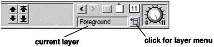 All layer functions are controlled from a layer menu opened either by clicking SELECT on the menu icon to the right of the current layer display in the info bar or by clicking MENU with the pointer over the current layer display. This menu is shown below.
