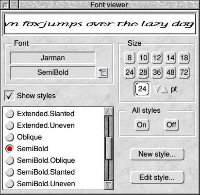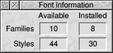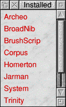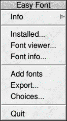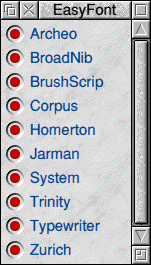 EasyFont2EasyFont2 is a font management system for RISC OS. It was originally published by Fabis Computing and is a predecessor of the EasyFont Pro. Although it lacks may of the advanced features of EasyFont Pro it is nevertheless a perfectly capable program for people who do not require all these additional features and have more modest needs. The copy supplied with this issue of RISC World, version 2.10, has been updated to make it 32 bit neutral and will work on any version of RISC OS from 3.1 to 5, so as well as 'traditional' machines it's now suitable for use on the A9, Iyonix or VirtualAcorn. EasyFont2 supports Acorn's interactive help, so you can use this if you wish to familiarise yourself with the program. What is a font manager?Many people seem to cope quite happily without any sort of font management. If you don't do any serious desktop publishing work and only have a small number of fonts then you can just place any additional fonts into the main system !Fonts folder and they'll always appear on the font menu with any program. That, however, is the main problem, they will all always appear on any font menu. If you have more than a very small number of fonts then that font menu can become rather cumbersome. Most people use only a fairly small number of fonts most of the time. We might acquire various others, often a lot of fancy PD fonts that are ideal for headings on notices, Christmas cards, etc. but we don't want them cluttering up the font menu every time we run !Draw or a wordprocessor. By installing your fonts in a font manager like EasyFont2 you can just 'switch' fonts on and off with the click of a mouse so that they're there when you want them but you don't get great clumsy font menus when you don't need them. A quick demonstrationJust double-click on the !EasyFont application icon and it will install on the icon bar in the usual way. Note that you don't normally need to run the program to use the fonts as will be explained later. If you click SELECT on the EasyFont icon the window shown below will open. ![]() This window lists all the fonts installed within EasyFont plus the fonts 'built in' to the RISC OS ROM, namely Trinity, Homerton and Corpus. All the other fonts shown were supplied pre-installed with this copy of EasyFont. If you put the mouse pointer over any of the font names in this window and click MENU a small menu will open showing all the styles available with this font, that is, italic, bold, etc. Now, to see how EasyFont switches fonts in and out of use run !Draw and open a Draw window. Click MENU over the Draw window and follow Style -> Font name to open the font list menu. You will see that (in addition to any other fonts you might have installed on your machine) all the fonts shown in the EasyFont window will also appear. Close these menus and go back to the EasyFont window and click on Archeo and Zurich so that they are no longer selected, that is, the button beside them isn't depressed. Go back to the font list menu in !Draw again and you will see that Archeo and Zurich have vanished. If you now quit EasyFont (select 'Quit' from the icon bar menu in the usual way) you will see that all the fonts switched 'On' in the main window are still available in Draw even though EasyFont isn't running. In fact, you don't need to run EasyFont at all for all of the fonts you have enabled to be available to any programs. All that need to happen is for !EasyFont to be 'seen' by the filer. To achieve this you can either place !EasyFont in your 'Apps' folder or, with RISC OS 4 or later include !EasyFont in your 'Look at' list. The icon bar menuIf you click MENU on the EasyFont icon bar icon then the following menu will appear. ![]() Installed Clicking on this will open the window shown below. This, like the main font window, lists all the fonts in alphabetical order but it only shows those which are currently switched On. ![]() You will find this extremely useful when you have collected a lot of fonts, many of which you use only infrequently and hence normally have them switched Off. It's a lot easier to see which fonts are available from this window than the main fonts window as it only shows those which are active. Font viewer This will open the window shown below. ![]() If you now open the main font list window and place the mouse pointer over the name of any font which is switched On and press both the CTRL and Insert keys together this font will appear in the Font viewer window. You can then the various styles available in that font by choosing from the menu which will appear if you click on the menu icon. You can also select the size you wish to view by using the 'bump' icons, clicking on one of the Size buttons or entering the size directly into the writable icon. You can also alter the text by clicking in the text field and changing it in the usual way. I will describe some other features of this window later. Font info This will open the window shown below. ![]() This window shows the total number of fonts Available, that is, those which have been installed into EasyFont2, and those Installed, that is, those which are currently switched On. From the information shown you can see that 10 font families are available, eight of them are switched On, that is, two are switched Off. There are a total of 44 styles available, but by switching Off two fonts this is reduced to 30. Add Fonts This will open a small window, shown below, which alows you to add more fonts to EasyFont2. You will see that there is no Close icon on this window. Instead, if you open the main menu while this window is open you will see that Add fonts has a tick beside it, indicating that the window is open. Click on Add fonts on the menu again and the window will close. ![]() To add a font to EasyFont2 just drag it to this window. Its name will appear in the upper icon (which shows "<Nothing>" in the picture above) and the Style currently being added will appear in the lower icon. After a font 