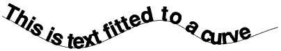 You may also fit a line of text to a curve as shown below. Simply select both the text and the curve and click on the option Fit text to curve in the Utilities menu. The text will be fined at the leftmost end of the curve. You may need to scale either text or curve to give them a similar length. You can make the curve transparent if you don't want it to show. As with envelopes and perspectives, you will need to extract the text from the curve using the Remove text from curve option if you wish to edit the text.