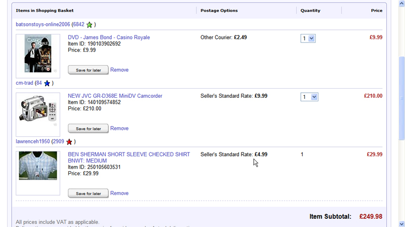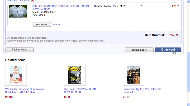 STEP EIGHT You can now continue shopping on the site. If you find another item you want to buy, add that to your basket too. You can fill your basket with as many items from as many different sellers as you like. But be aware that items which are stored in your basket aren’t held for you and are still on sale until the purchase has been completed.