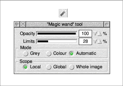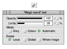 - Set Limits to 100% and click on the white area of the canvas. A selection like this is useless because the white area now includes part of the picture.