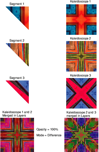 A simple kaleidoscope can be constructed in Photodesk. Many unusual and striking designs can be created by following the steps in this article. The tutorial only covers the basic kaleidoscope (figure 1) but embellishments are easily added once the principles are understood. All procedures in this tutorial refer to Photodesk's cutting mode (often referred to as Montage mode in the manual).