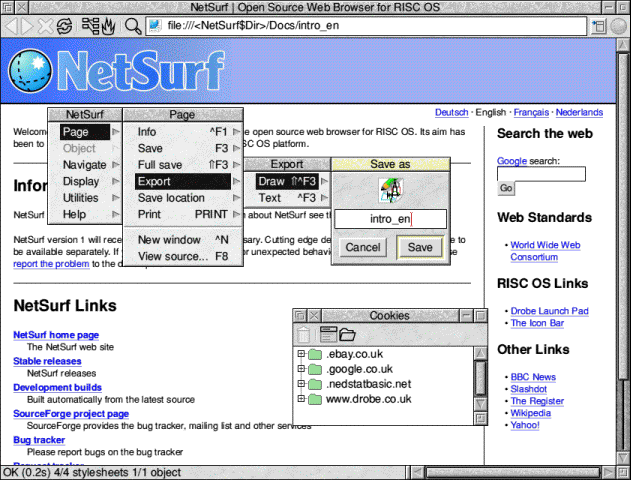 PD WorldPaul Brett with the latest freeware and PD releases for RISC OS. NetSurf V 1.1 - NetSurf DevelopersWe really should start our regular roundup of the latest software releases with the biggest. The first full release of NetSurf was made at the Wakefield Show in May this year. Despite this being only a few months ago the NetSurf developers have not slackened the pace and a new version 1.1 has now been made available. The main improvements relate to stability and minor bugs reported by users. There have also been updates to the cookie handling, some of the rendering and to the documentation. ![]() NetSurf I really cannot recommend NetSurf enough. The development work being lavished on it by the developers is exceptional and this gets reflected in the quality of the product. Every RISC OS user should have a copy, given that it's free I can't see any reason for anyone not to have a copy on their harddisc. If you are already using NetSurf then it's best to upgrade to the new version. If you aren't using it then give it a try, you won't regret it. Calibre - Ray FavreCalibre is a calendar generating application for RISC OS. Strangely this is an application that I didn't know I wanted, till I tried it. Calibre has comprehensive options to produce just about any sort of customised calendar that you could want. There are a number of options and Calibre can produce calendars with 5 different popular month-per-page formats. ![]() Calibre You can include your own JPEG graphics and can mark Birthdays or other "red letter" days. You also have almost total control over the fonts, text sizes, layout and printing. Calibre does all the hard work, you just tell it what you would like and it sorts the rest out. Full documentation is supplied in Impression, Ovation and HTML formats. I must say that in my view Calibre really is a first class application and we could do with more RISC OS software of this standard. FileCrypt - Paul VigayFileCrypt version 0.04 is an update to Paul's FileCrypt application. This is designed to securely protect any of your files using a very strong GnuPG encryption method. This will stop any prying eyes poking into important financial records, or other such information. ![]() FileCrypt FileCrypt is simplicity itself to use. All you have to do is drag in a file, set any options that you require and then drag out the newly encrypted file. You can also produce encrypted files to be sent to third parties. Just supply them with the key and the file separately and you know that your information will be safe. For your comfort full source code is provided with FileCrypt so you can see exactly how it works. Note that you will need a copy of the RISC OS port of GnuPG alongside FileCrypt for it to work (I've included this in the PD Software directory - ED). IcnClipBrd - Thomas Leonard, 1999, Stephen Fryatt 2007IcnClipBrd is a small utility, originally written by Thomas Leonard, that allows the global clipboard to be applied to any writable icons on the desktop. Steve Fryatt has taken over development and has produced this updated 32bit version. This module provided some long over due integration between the clipboard and writable icons. We all know that CTRL U will delete the text in a writable icon, but wouldn't it be nice to be abe to copy the text, or paste in some text instead of having to type it all again. That's what IcnClipBrd does. This is the sort of feature that RISC OS should always have had. Using the facility is very easy. The conventional Ctrl-C, Ctrl-X and Ctrl-V keypresses along with Ctrl-Z to replace the icon contents with the text on the clipboard. In addition, Ctrl-K deletes everything to the left of the caret. Ctrl-E can be used to keep just a DOS file extension (eg. "NOTES/TXT" would become "/TXT"), while Ctrl-D de-DOSifies a filename (eg. "NOTES/TXT" would become "Notes"). You can get more information from the supplied help files. ArtWorks Viewer - Martin WuerthnerThe ArtWorks viewer is a freely distributable application that allows ArtWorks files to be viewed on a machine that doesn't have a full version of ArtWorks installed. The rendering modules inside it are also used by a number of third party applications, including Impression, OvationPro, EasiWriter and TechWriter, to display ArtWorks files on screen and to print them as part of a document. ![]() AwViewer As ArtWorks has developed, under the superb management of Martin Wuerthner, extra features have been added, but the old ArtWorks viewer didn't support the same extra features. The result was that a file would look different, depending on whether it was display in ArtWorks, or another package. You could find that some parts of the image vanished or were rendered incorrectly. This new ArtWorks viewer supports all of the features offered by ArtWorks version 2.7. This includes, deep sprites, text areas, JPEGs, ClipViews, rainbow blends, internal arrowheads and the new arrowheads introduced in ArtWorks 2.6. Effectively every program that uses the ArtWorks viewer will now display the files identically to ArtWorks itself, this even includes files with transparency applied. It accepts multi-page files as created by ArtWorks 2.7 (or later) and allows the user to step through the pages of the document one at a time. As a bonus feature is also offers a full screen preview mode to act as a simple presentation package. A new viewer for ArtWorks really is good news as it means anyone can now view the latest format ArtWorks files on any RISC OS computer with RISC OS 3.5 or later. Signing offThat concludes our round up of the best new software releases. If you have an application that you would like featured in RISCWorld please send an e-mail to the normal editorial e-mail address. Paul Brett |