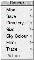 To access the main menu press the middle mouse button (MENU) whilst the pointer is in the Render Bender window. This pops up the main menu