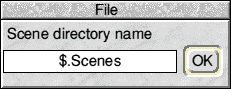 Note; You should always use different directories for Scene files and Picture files. The suggested names are Scenes and Pictures. Picture files always take the Scene name and have a number attached e.g. Scene1, Scene2 etc. When you use Animator later the animation file takes the Picture names without the number i.e. it has the same name as the Scene file. If they are both in the same directory the Scene file will be overwritten. If you change the name of a Picture file remember that you must also change all other pictures in the sequence to the same name plus the relevant number.