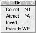 - Attract (Ctrl A) - This brings up yet another type of cursor. This one looks like a magnet and it is used to 'attract' selected points thus enabling you to distort objects. You use it by selecting some points, bringing up the Attract cursor and then pressing ADJUST whilst holding down SELECT. SELECT works as normal and moves the cursor around but when you also press ADJUST the selected points are 'attracted' to the magnet cursor. The closer a point is to the cursor the faster it is attracted towards it. If the point is more than 3/4 of a view window away from the cursor then it does not move.