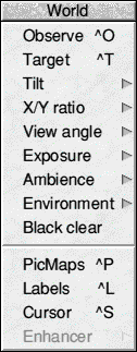 The World menu deals with settings that control the imaginary world in which the pictures are plotted. All World settings are saved with any vector file.