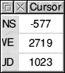 Click on this item or press CtrI S to open the Cursor position window. This window has three entries for North/South, West/East and Up/Down. As you move the cursor the values are updated. If you want to enter a specific position click over the relevant entry in the Cursor window with MENU to gain access to an input box. Enter the required value and press Return.