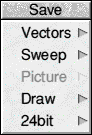 The Save menu contains five sub menus for saving images in various formats.