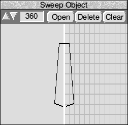 - De-select Scale NS and Scale WE in the Misc menu and click three times on the Scale icon with SELECT. Press Space to update the design panes. You now need to create the tail of the acorn. This is done using a Sweep object.